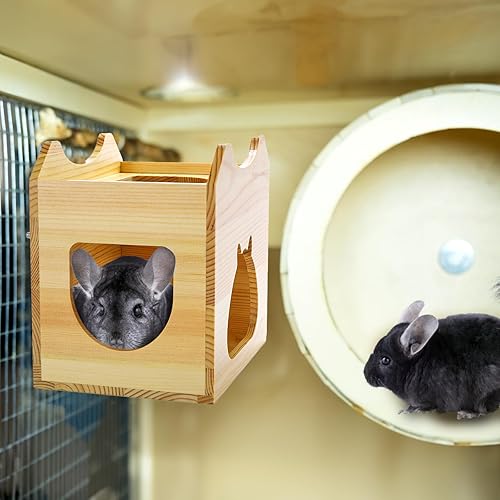 Made of natural timber, offering security and fun for chinchillas and small pets, dispelling boredom and promoting their well-being. Our small animal houses and hideouts are a quiet place for pets to hide, sleep, and relax.