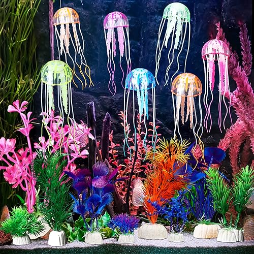 Nice Combinations: you will get 6 pieces of cute mini suspended jellyfish decorations, and 11 pieces of aquarium fish plants with different designs, plenty of quantities to meet your different decoration needs
