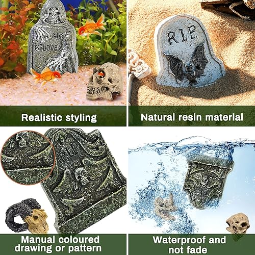 Quality material: made of quality resin material, the skull fish tank decoration set is reliable and safe for fish, durable and waterproof, so that you can rest assured to use, making small animals in the water happy and cosy