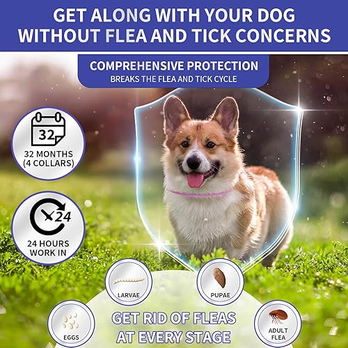 32 MONTHS PROTECTION - Our flea and tick collar for dogs comes with 4 packs with a total of 32 months of flea and tick prevention for dogs. One of the key benefits of the dog flea collar is designed with controlled slow-release active ingredient technology, ensuring each collar can protect a dog for up to 8 months. Say goodbye to the hassle of frequent dog flea collar replacements, thus protecting you and your family's health for a long time.