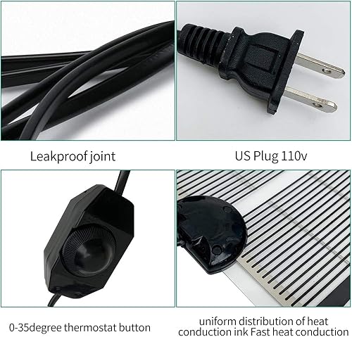 *Feature: Ultra-thin plastic surface to minimize wear on the heating mat surface.Waterproof and moisture proof, it can be wiped. This product has a slight waterproof function. The surface dirt can be wiped directly with a wet rag.5w/15w/25w/35w 110v Non-Adhesive ,Removable Under Tank Heat Pad
