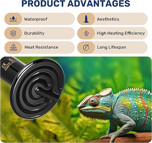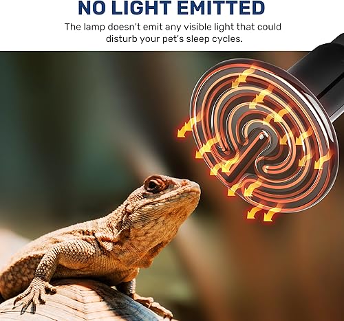 No Light Emission: Provides gentle infrared heat without disturbing light, ideal for nighttime use to maintain natural sleep cycles for reptiles, amphibians, and poultry