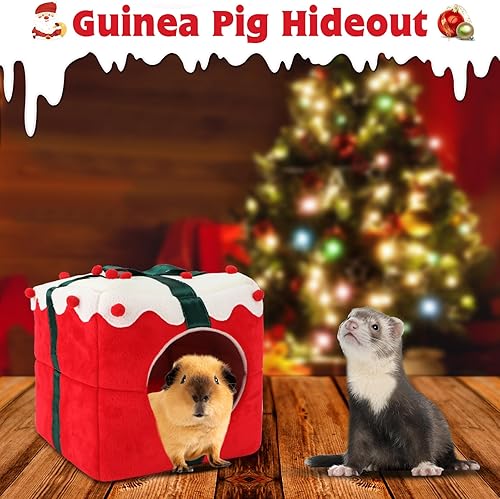 Lovely pet house: This guinea pig house is made of a Christmas style square design with the appearance of a gift box; It attracts your pet's attention and makes it easier for them to accept their new burrow bed; It's perfect for everyday use and a great Christmas gift for your furry friend