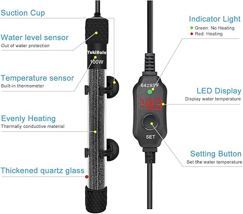 【External Temperature Controller, Never Wet Your Hands】Use an external controller to set the temperature instead of immersing your hands in water to rotate the dial. Never wet your hands or contaminating your tank. Strong suction cups, easy to install.