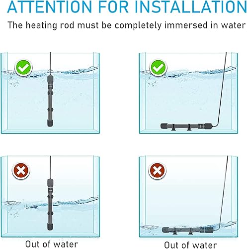 【Overheating Protection, Out of Water Protection】The power will be cut off and stop heating automatically if the heater out of water or overheating. Protect your fish. Never cook your fish.