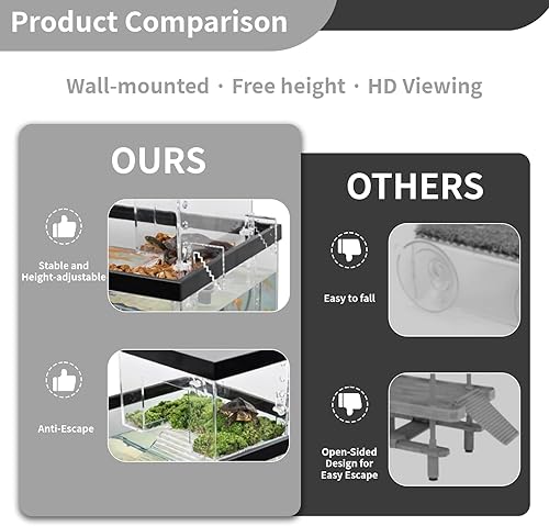【Spacious & Secure Basking Villa】Provide your turtles with a generous 7.8 x 5.5 inch elevated lounging area — offering ample room for resting, drying, and natural sunning behavior. The enclosed design keeps pets safe while allowing free movement between water and land.