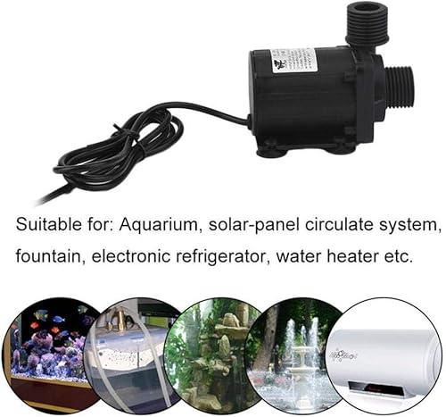 √ The point straight in line with the pump body is the water inlet, vertical to the pump body is water outlet. DC12V 1.5A: can be powered by solar panel, batteries, adapter or other power sources
