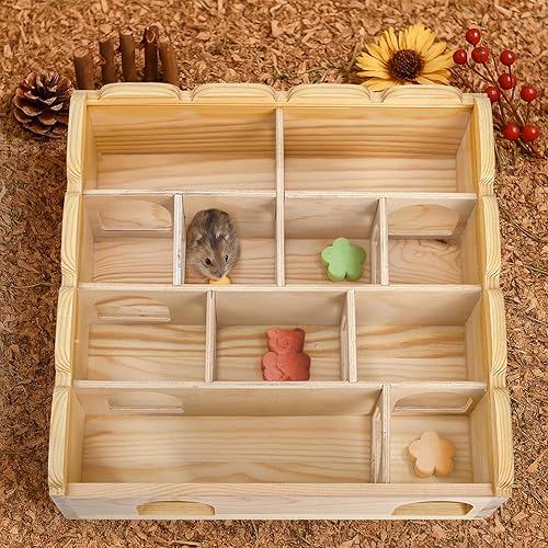 Natural Pine Wood: Made of natural pine wood, this hamster hideout maze is non-toxic, odorless, and breathable, with no sharp edges, ideal for rodents; wood is more chew-resistant than plastic, 9mm thickness for long-lasting use without deformation, suitable for highly active hamsters