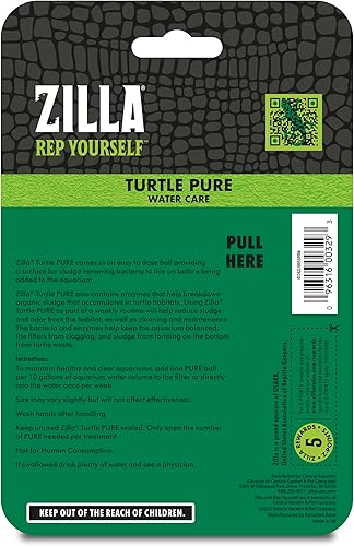 USING TURTLE PURE AS PART OF A WEEKLY ROUTINE will help reduce sludge and odor from the habitat, as well as cleaning and maintenance for cost savings. Simply add one ball a week per 10 gallons. Keep unused Zilla Turtle PURE sealed. Only open the number of PURE needed for treatment.