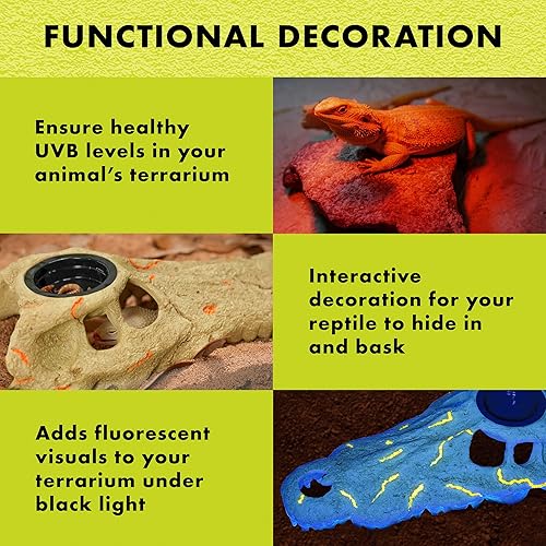 Zilla Rapid Sense UV Detecting Pet Reptile Terrarium Décor, Detects UVB Levels, Crocodile Skull, Medium(Large)