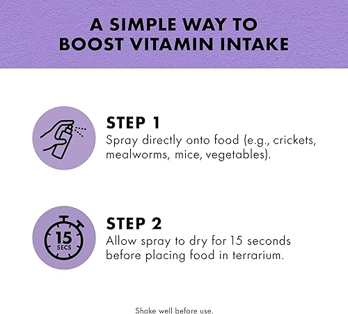 QUICK AND EASY SPRAY APPLICATION, simply spray onto your reptile’s food and wait 15 seconds.